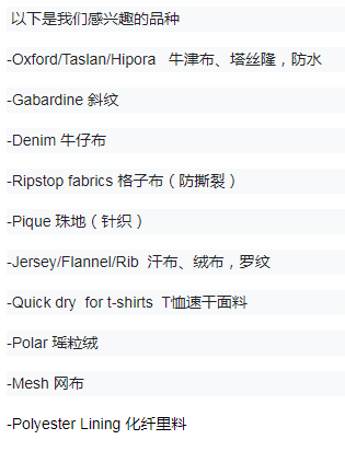 面料采购信息