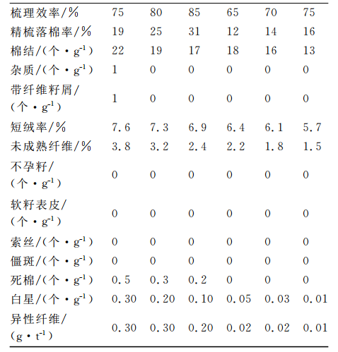 棉花品质、采摘方式及加工方式等会影响清梳联、梳棉、精梳工序的梳理效果和梳理效率,不同产地、不同气候环境生产的细绒棉、长绒棉由于纤维性质差异,其梳理效率和梳理效果也明显不同。但最终造成差异的关键还是危害性纤维和危害性疵点,这是因为清梳联、梳棉、精梳工序梳理效果和梳理效率是通过对危害性疵点、危害性纤维的清除来评价的。一般而言,棉纤维中分散性较强的危害性疵点、危害性纤维在梳理工序容易被清除,棉层棉絮、棉条质量较好,梳理效果和梳理效率也好;反之,如果棉纤维出现大量纠缠或夹杂于纤维之中的危害性纤维、危害性疵点,则梳理效果下降。