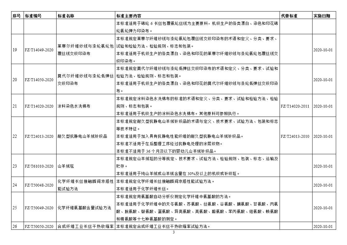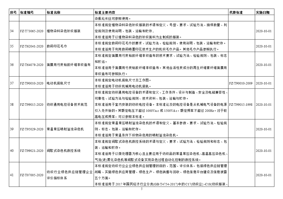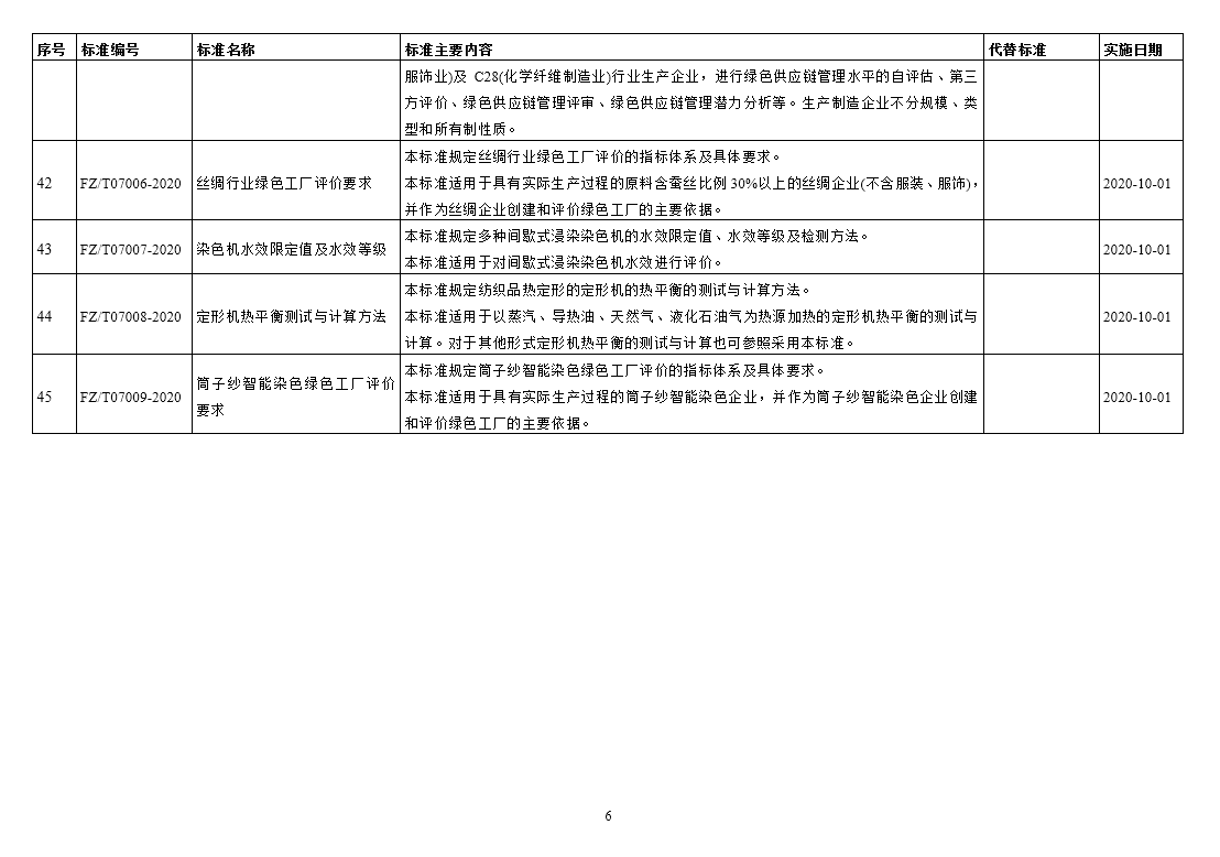 附件1:45项纺织行业标准编号、名称、主要内容等一览表.doc