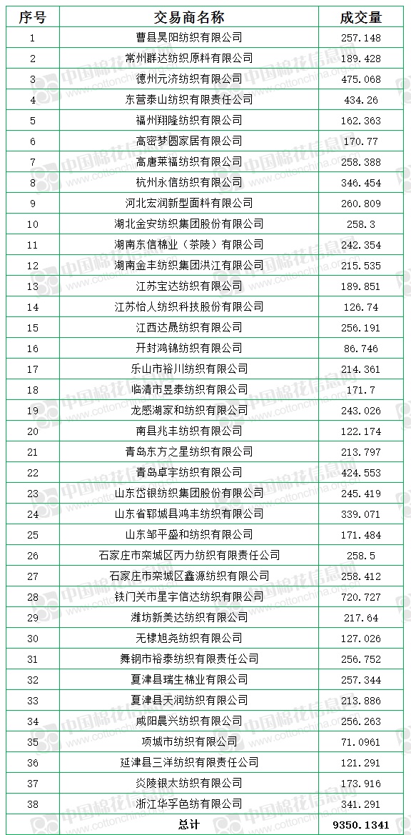 8月27日储备棉轮出销售资源9350.13吨,实际成交9350.13吨,成交率100%,成交均价17019元/吨,较26日下跌140元/吨,折3128价格18477元/吨,较26日下跌124元/吨。