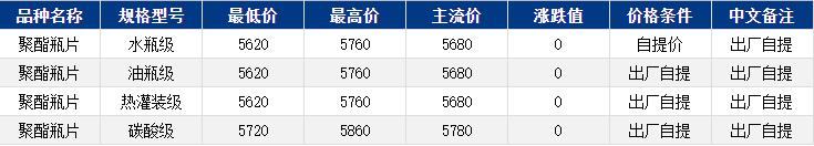 华东聚酯瓶片暂稳,商谈5680元/吨附近。市场情绪有所缓和,聚酯瓶片工厂部分下调20-50元/吨,部分持稳。市场重心窄幅震荡,10-11月货源报盘5640-5770,局部略高、略低;递盘5620-5730或期货合约2511升水10-100,考虑不确定因素较多,下游及贸易商接盘意愿不高,观望为主。