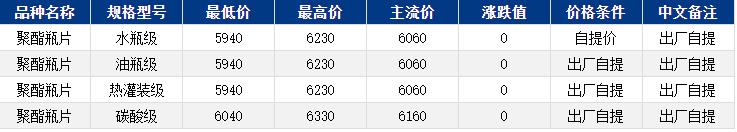 华东聚酯瓶片收于6060元/吨,涨跌值持平,原油、原料下跌,工厂报盘多跌40-60元/吨不等,然而部分现货趋紧,成交重心变化不大。1-2月货源报盘6000-6230元/吨,递盘5940-6070元/吨;因部分货源流通紧张,持货商低价出货谨慎。