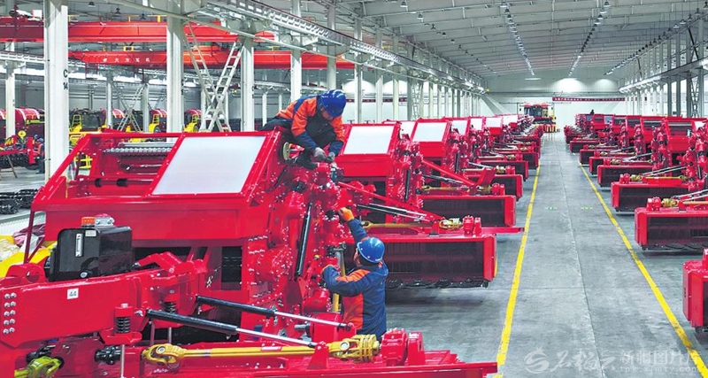 1月20日,工人在新疆钵施然智能农机股份有限公司生产车间组装棉花秸秆收获打包机。眼下,该公司开足马力生产,力争实现1季度“开门红”。