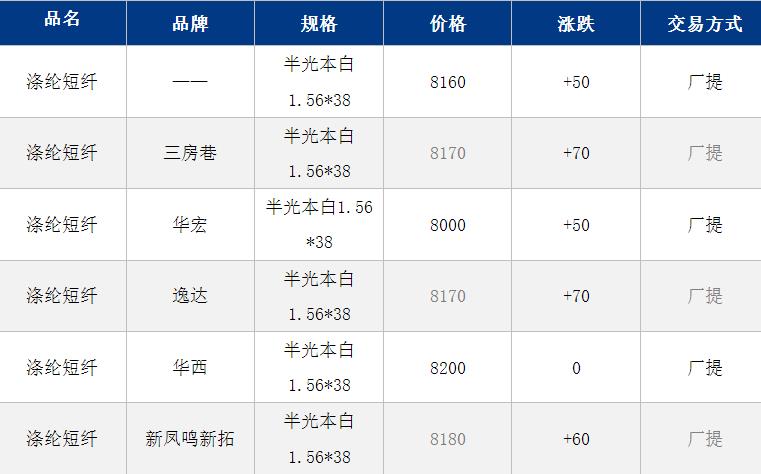 江苏涤纶短纤现货估价上涨50元到8160元/吨;地缘局势仍有反复可能,短纤现货价格较昨日低价窄幅反弹,目前商谈参考8100-8200元/吨,偏低8000元/吨附近。