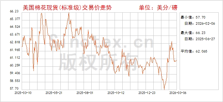 行情图表 您的位置 : 首页 >> 行情图表 >> 美国棉花现货(标准级)交易价