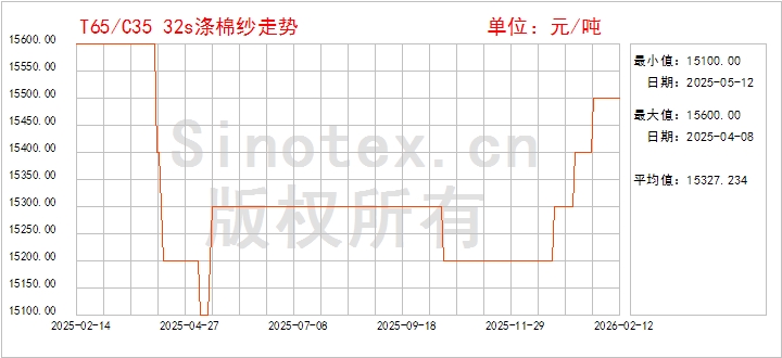 行情图表 您的位置 : 首页 >> 行情图表 >> T65/C35 32s涤棉纱
