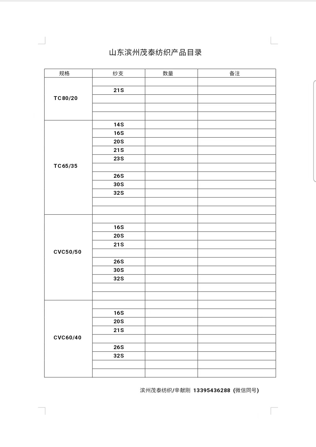 | 供货企业 | 滨州市茂泰纺织有限责任公司 |