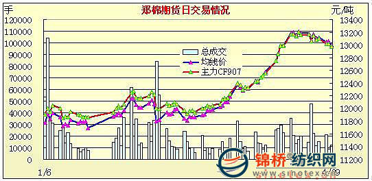 4月29日,郑棉主力合约CF907平开,早盘空头卖盘打压期价下滑创日低,随后在空头短线回补支撑下脱离低点震荡,午后交投重心略有上移,日线形成小阴线,日内成交较前一日有所放大,持仓量少量增加。C905合约日成交654手,日减仓116手,终盘持仓量6664手;CF907合约日成交8860手,日增仓696手,终盘持仓量42424手;CF909合约日成交1944手,日增仓568手,终盘持仓量9284手。 基本面情况:“猪流感”疫情引发全球的股市、期市一片绿肥红瘦,农产品普遍大跌,电子盘上棉花独秀一枝,但棉副方面恐遭变化,人们恐慌疫情的爆发将抑制饲料需求,所以棉油、棉粕需求回落,价格有所下调。皮棉现货价格涨幅继续放缓,市场上普遍反映近两日皮棉现货难有上涨之势,价格基本维稳,实际成交价格略有下调。纺织厂采购依旧低迷,再过两日就是五一小长假,市场传闻国家会在五一之后抛储,所以市场上棉企多积极出货,纺织厂则观望居多。