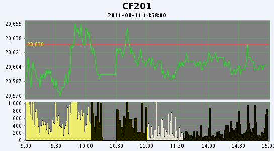主力CF201合约当日交易走势