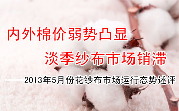 【锦桥纺织网专稿】2013年5月份,花纱布市场逐步进入淡季,淡市销滞价降的行情特色日渐凸显。表现为:纽约棉期弱势依旧,延续上月跌势,在宽幅震荡运行中累计大幅扩幅下跌,近期主力ICE期棉1307合约下旬的九连阴,不但跌破了80美分/磅的整数价位,而且创三年来最长的连跌记录,也是今年1月18日以来ICE期棉的最低价位。后收储