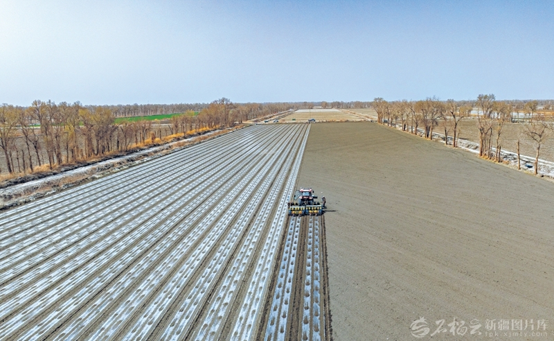 3月30日,加装北斗卫星导航系统的全自动铺膜播种机在兵团第二师29团16连棉田里作业。眼下,兵团第二师棉花播种已全面展开,今年预计种植棉花70万亩。