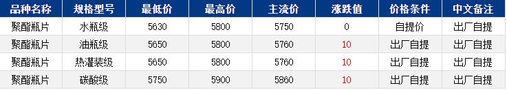 华东聚酯瓶片收于5760元/吨,涨跌值10元/吨,原油上涨带动原料窄幅上行,聚酯瓶片工厂部分持稳,市场重心震荡偏强调整。11-12月货源报盘5650-5800元/吨,局部略高5830元/吨或期货合约2512贴水40至升水10,递盘5720-5760元/吨,观望情绪浓厚。