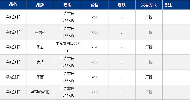 江苏涤纶短纤现货价格下涨5元至6290元/吨。原油反弹推升成本,短纤期现货价格窄幅反弹,早间现货主流6260-6330元/吨自提,偏低6120元/吨附近自提。