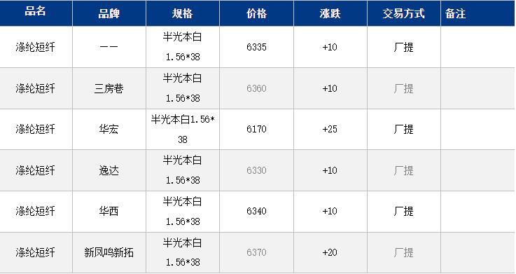 1.4D半光直纺涤纶短纤江浙商谈重心6250-6450元/吨出厂或短送,福建主流商谈6300-6450元/吨现款短送,山东、河北主流6350-6550元/吨送到。