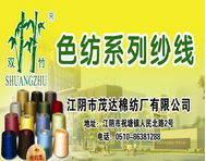 江阴市茂达棉纺厂有限公司座落于江阴市东城区的中国针织服装名镇——祝塘镇,公司占地面积126亩,始创于1958年,从土纺土织开始逐步发展,70年代起形成小规模精纺。现有纱锭10万枚,主要生产设备采用瑞士产清钢联、德国产ACT338自动络筒机、ACT312气流纺机、倍捻机以及国内先进的纺机组合,已具备了日产各类纱线70余吨,年产25000余吨的生产能力。
