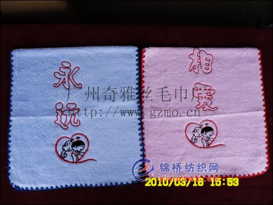 广州奇雅丝纺织品有限公司是正规注册的专业毛巾生产厂商(公司),同时是阿里巴巴诚信通会员,另外,“奇雅丝”是本公司品牌商标,已在国家工商管理总局商标局申请注册,受法律保护。我司集生产和销售于一体,可为您节省中间费用,让您以*低的价格拿到*优质的毛巾,提升您产品的竞争力。诚信,热情,专业,高效是我们公司对每位工作人员的要求,生意没有大小,能作的生意,再小的单我们也重视。本公司注重人才的培养,只有具备了专业的人才,企业才能在激烈的市场竞争中走在同行的前面。我们在规范企业操作的同时,人性化的管理,与客户的互动交流让员工的工作变的轻松,在完成客户订单的同时,与客户建立起长久的合作关系。