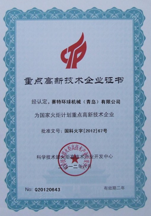 重点高新技术企业证书.