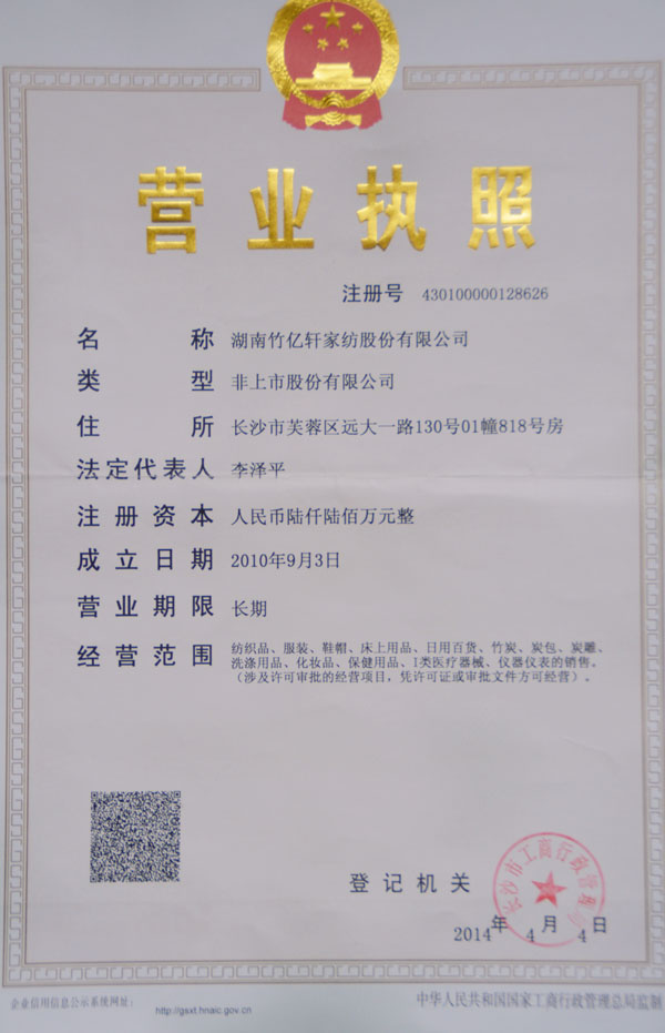 湖南竹亿轩家纺股份有限公司